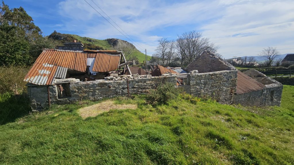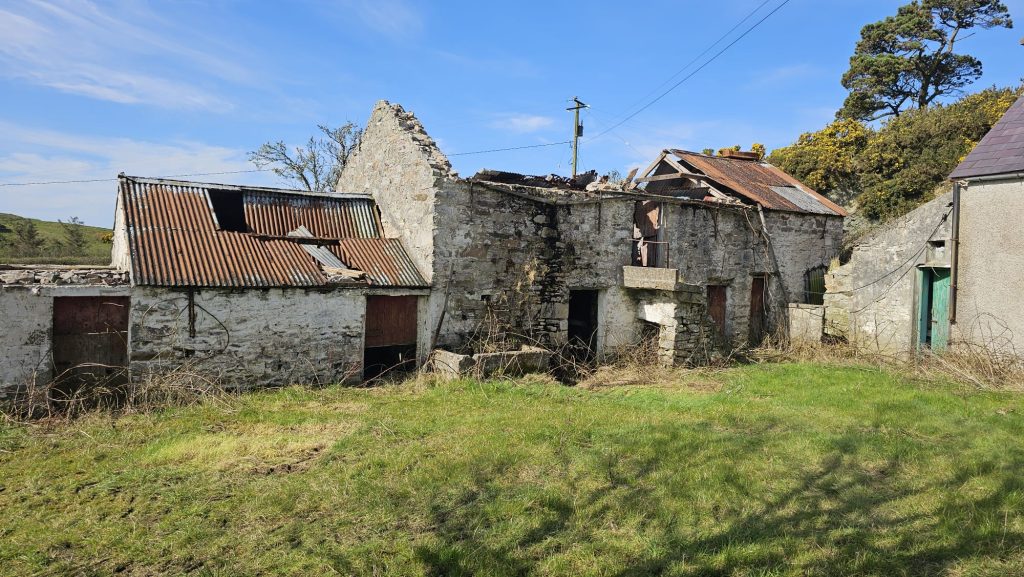 This property consists of one small cottage and a number of stone derelict outhouses that sit on 0.462 acres of land. The cottage is in a state of disrepair and has been vacant for over two years which would make the property applicable for the Vacant Property Refurbishment Grant. The property looks onto beautiful mountainous views and is only a short 10–15-minute drive to the nearby seaside villages of Carrigart and Downings.